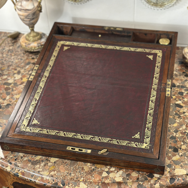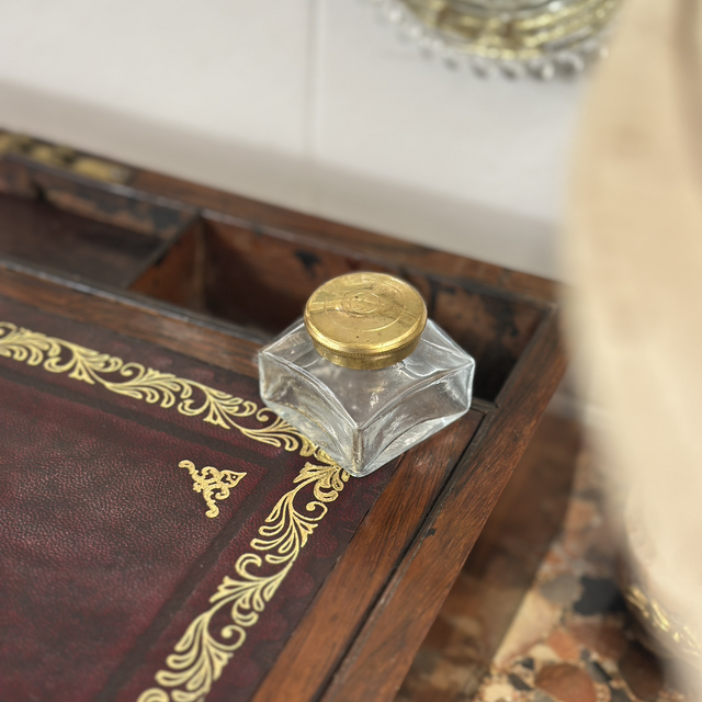 embutidos em latão e interior com tampo em pele cunhado a ouro