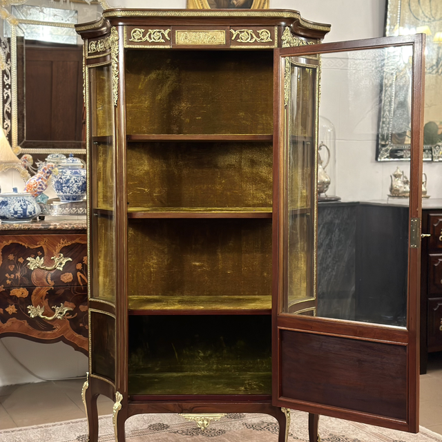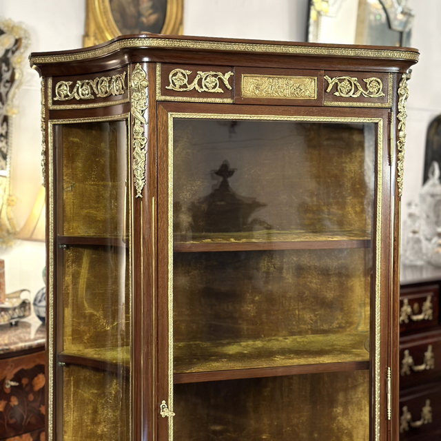 Elegante vitrine francesa do século XIX (c. 1860–1880), em estilo Luís XV revival, típica do período Napoleão III.